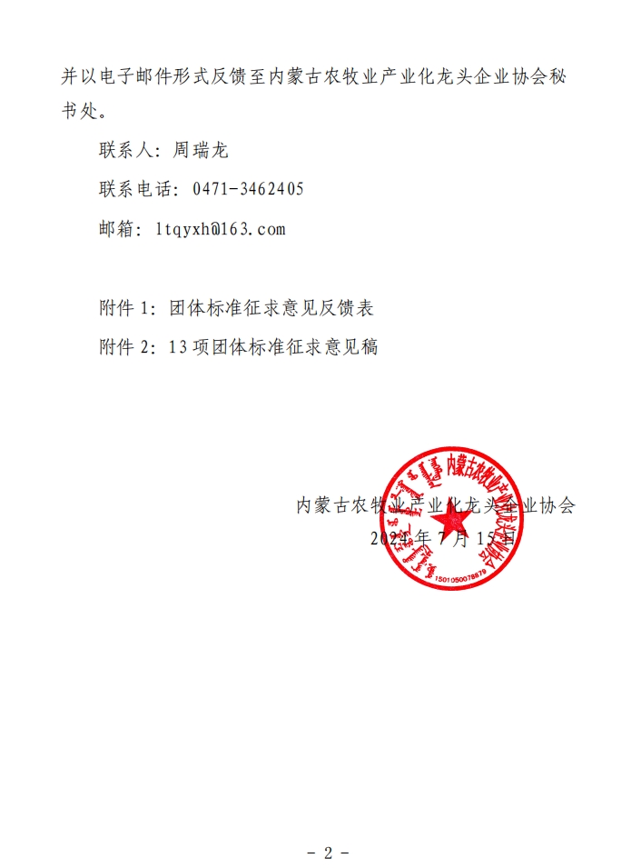 標(biāo)題:內(nèi)蒙古農(nóng)牧業(yè)產(chǎn)業(yè)化龍頭企業(yè)協(xié)會(huì)關(guān)于《咸奶茶粉配方》《咸奶茶粉加工工藝規(guī)程》等13項(xiàng)團(tuán)體標(biāo)準(zhǔn)征求意見(jiàn)的通知