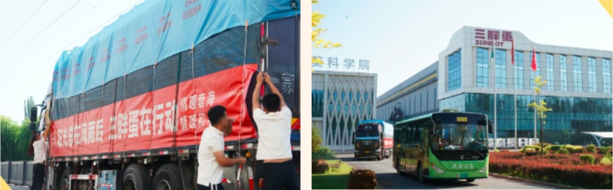 從區(qū)域品牌到全國領先,一路成為農業(yè)產業(yè)化國家重點龍頭企業(yè),三胖蛋的成長路上,始終離不開家鄉(xiāng)的支持和關懷。帶著向日葵“一生向陽”的韌勁,挺身而出,用愛心物資搭起溫暖的橋。