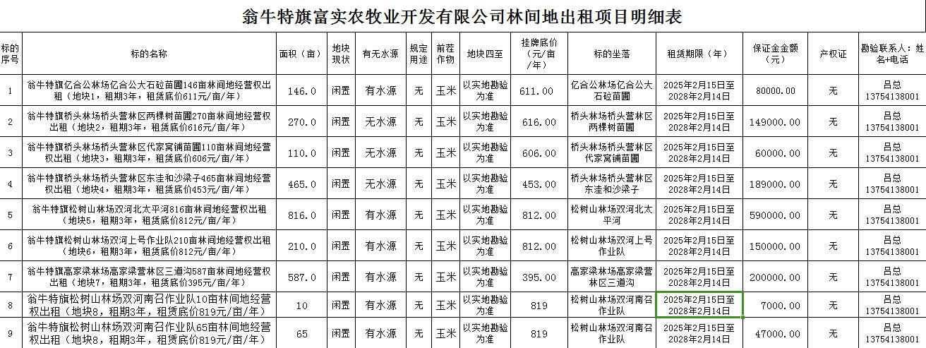 翁牛特旗約2679畝林間地經(jīng)營權(quán)出租,租期3年