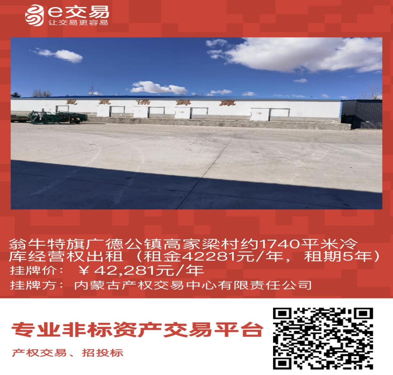 翁牛特旗廣德公鎮(zhèn)高家梁村約1740平米冷庫經(jīng)營(yíng)權(quán)出租(租金42281元/年,租期5年)