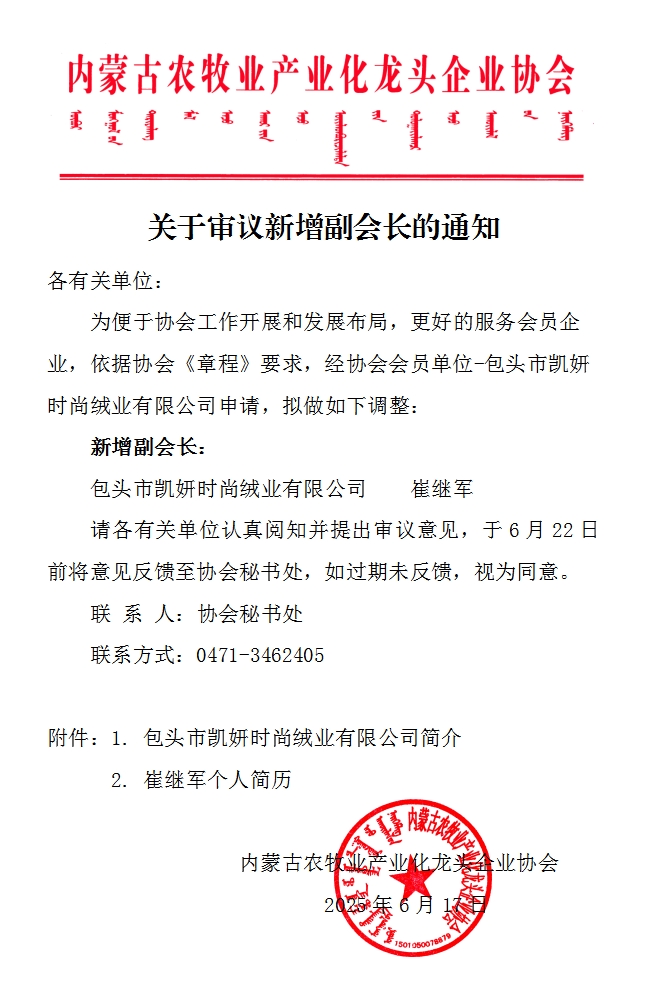 關(guān)于審議新增副會(huì)長(zhǎng)的通知