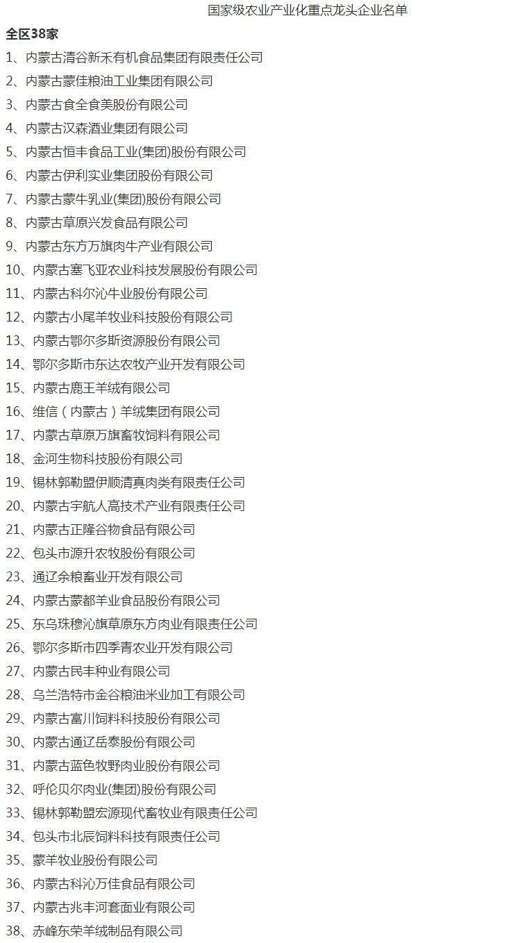 企業(yè)名稱(chēng):截止2017年末國(guó)家級(jí)農(nóng)業(yè)產(chǎn)業(yè)化重點(diǎn)龍頭企業(yè)名單